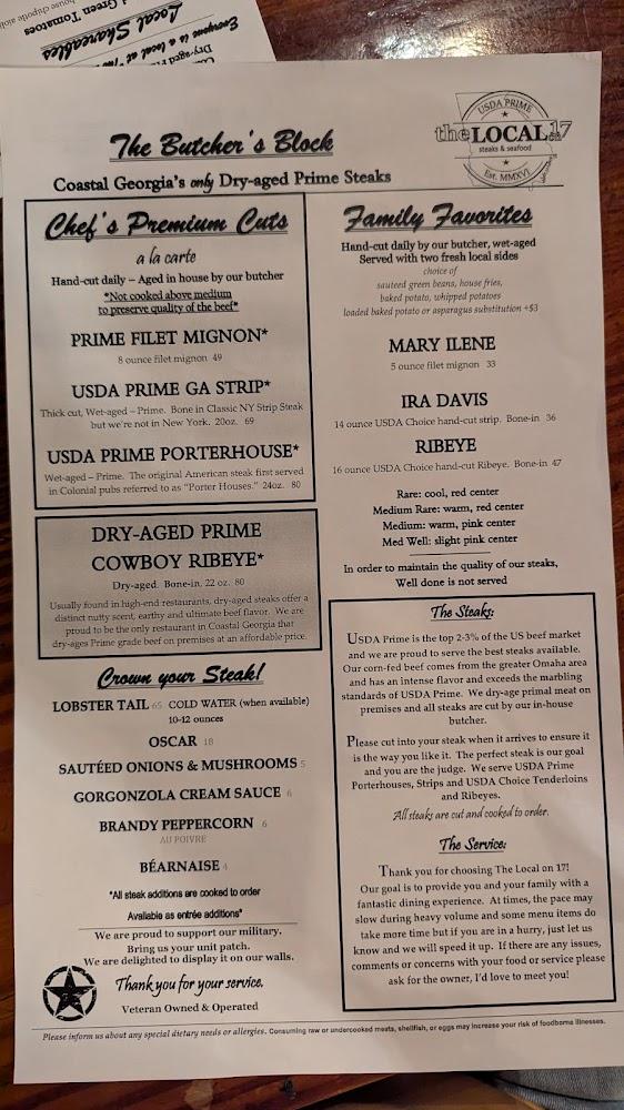 The menu at The Local on 17 features a diverse range of American classic dishes, with steak as the focus. Each option, from appetizers to desserts, is crafted to highlight local ingredients and culinary expertise.